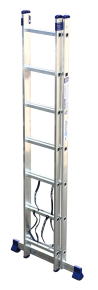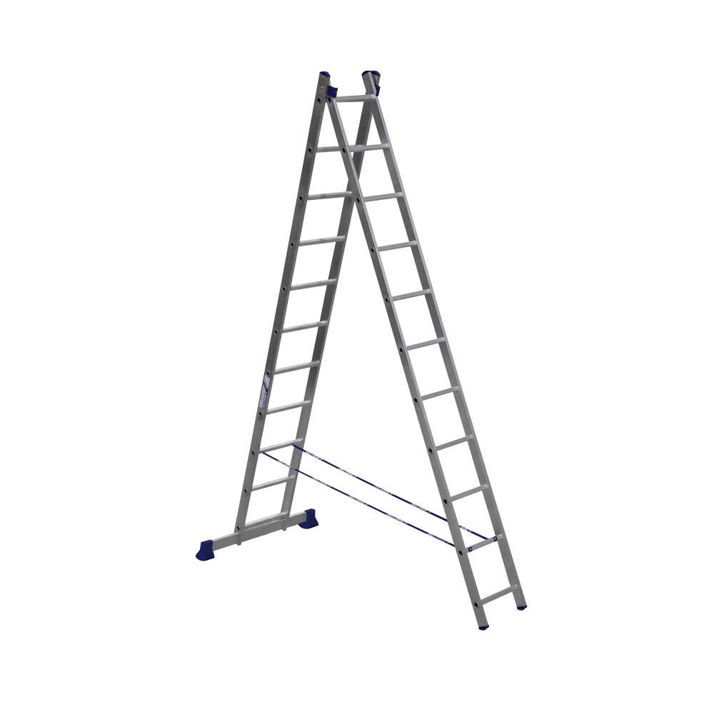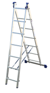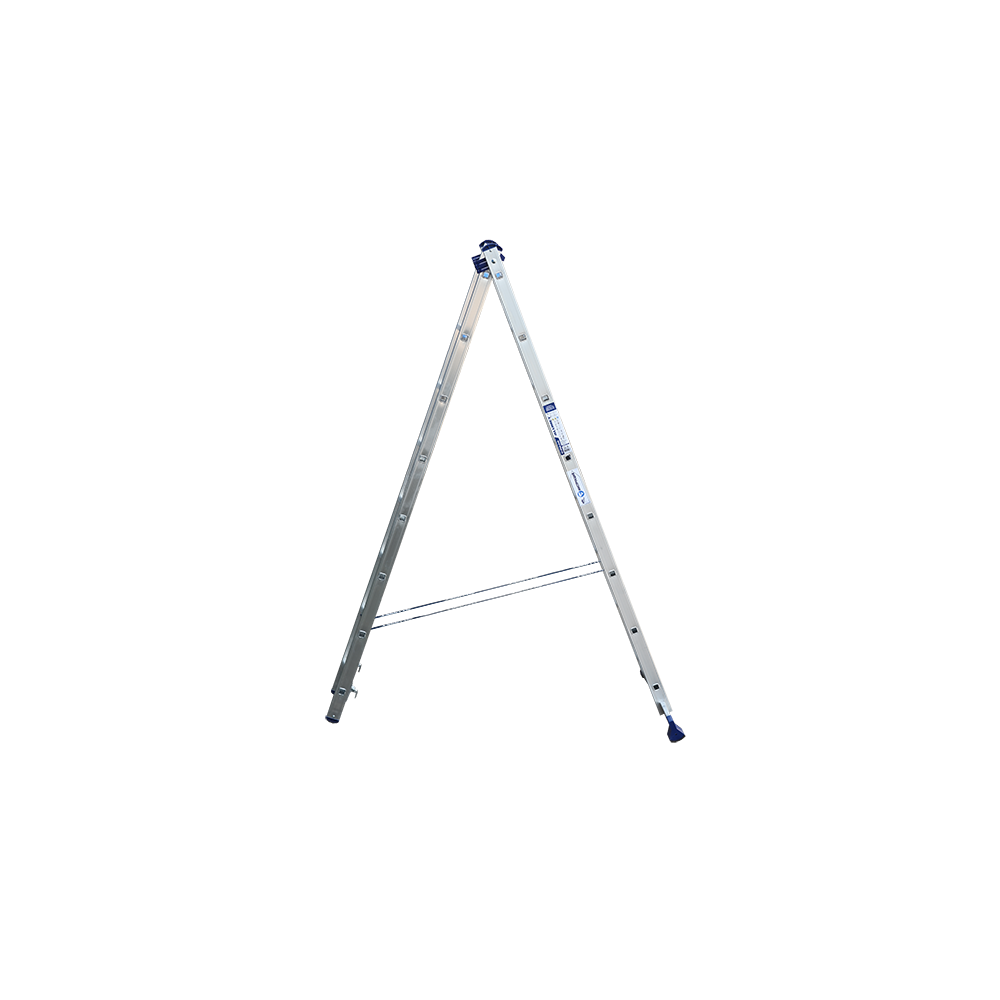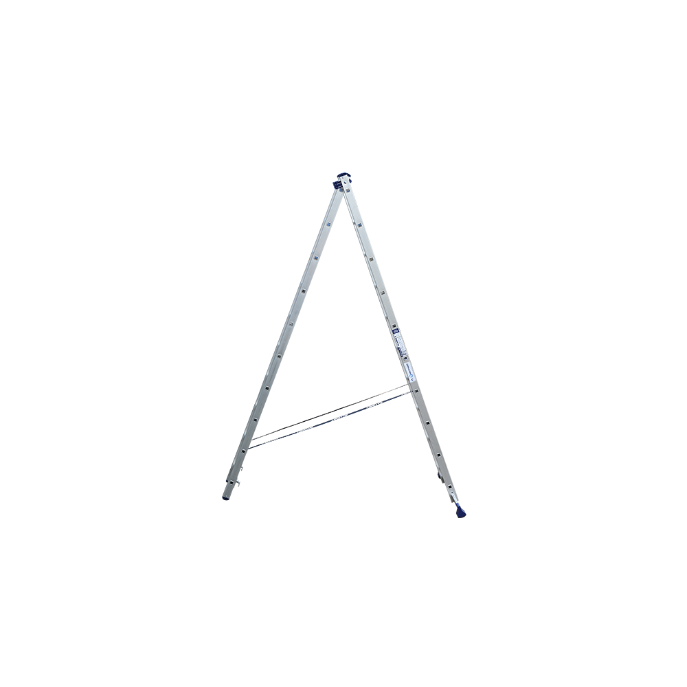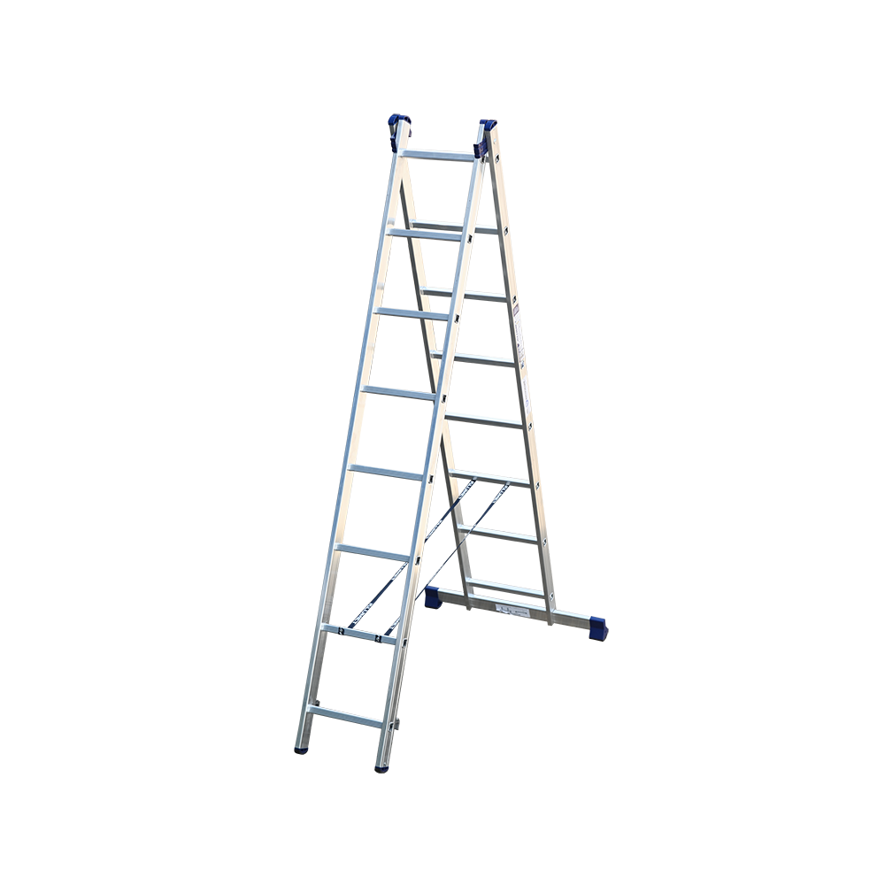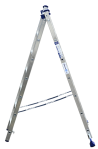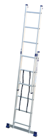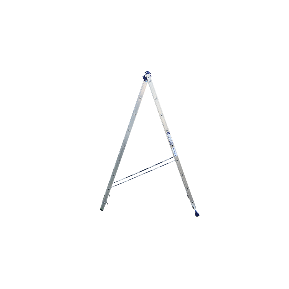 Универсальность лестницы заключается в том, что она может использоваться как раздвижная приставная лестница и как свободностоящая двухсторонняя стремянка.
