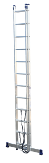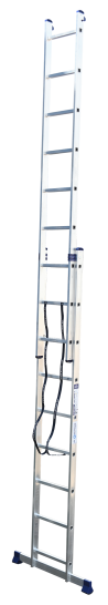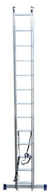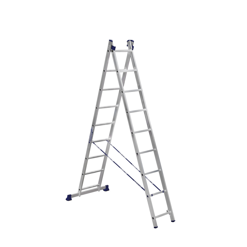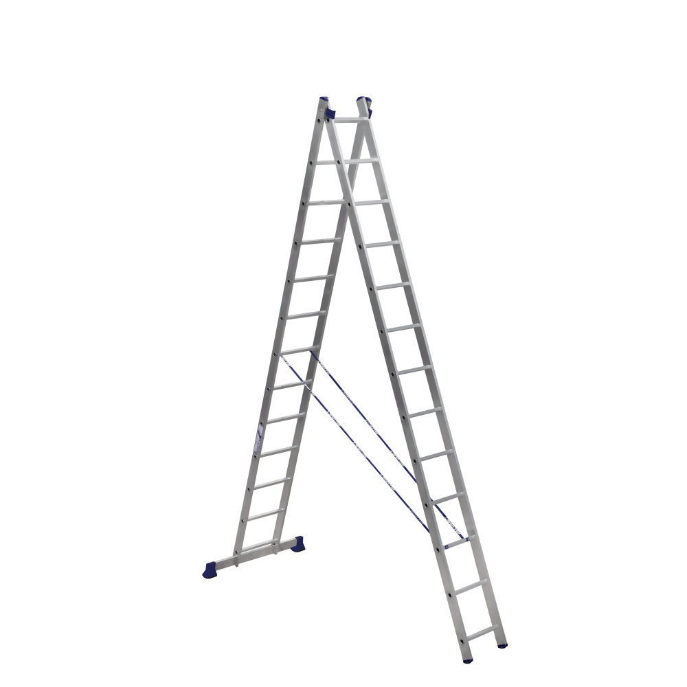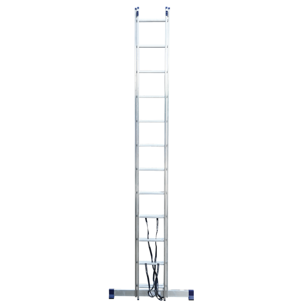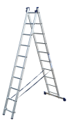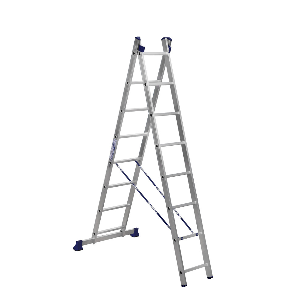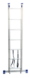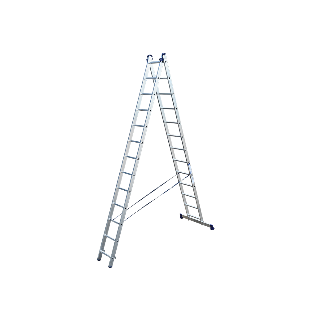 Универсальность лестницы заключается в том, что она может использоваться как раздвижная приставная лестница и как свободностоящая двухсторонняя стремянка.