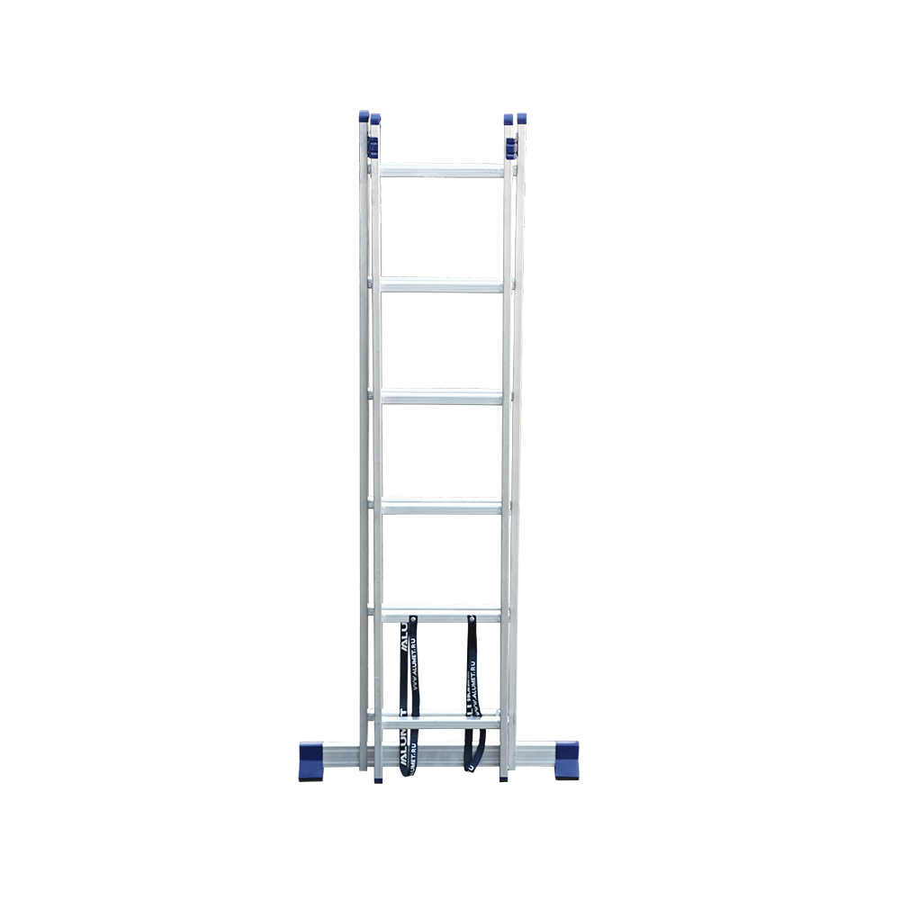 Прочность конструкции в приставном виде обеспечивается необходимым перехлестом секций, что делает ее конструктивно сложнее, тяжелее и поэтому дороже по сравнению с односекционной лестницей. От «расползания» лестницу в конфигурации «двухсторонняя стремянка» удерживают страховочные ремни. Они же обеспечивают требуемый перехлест в конфигурации «приставная лестница». Конструкция неразборна, поэтому отдельно пользоваться каждым из двух элементов лестницы невозможно.