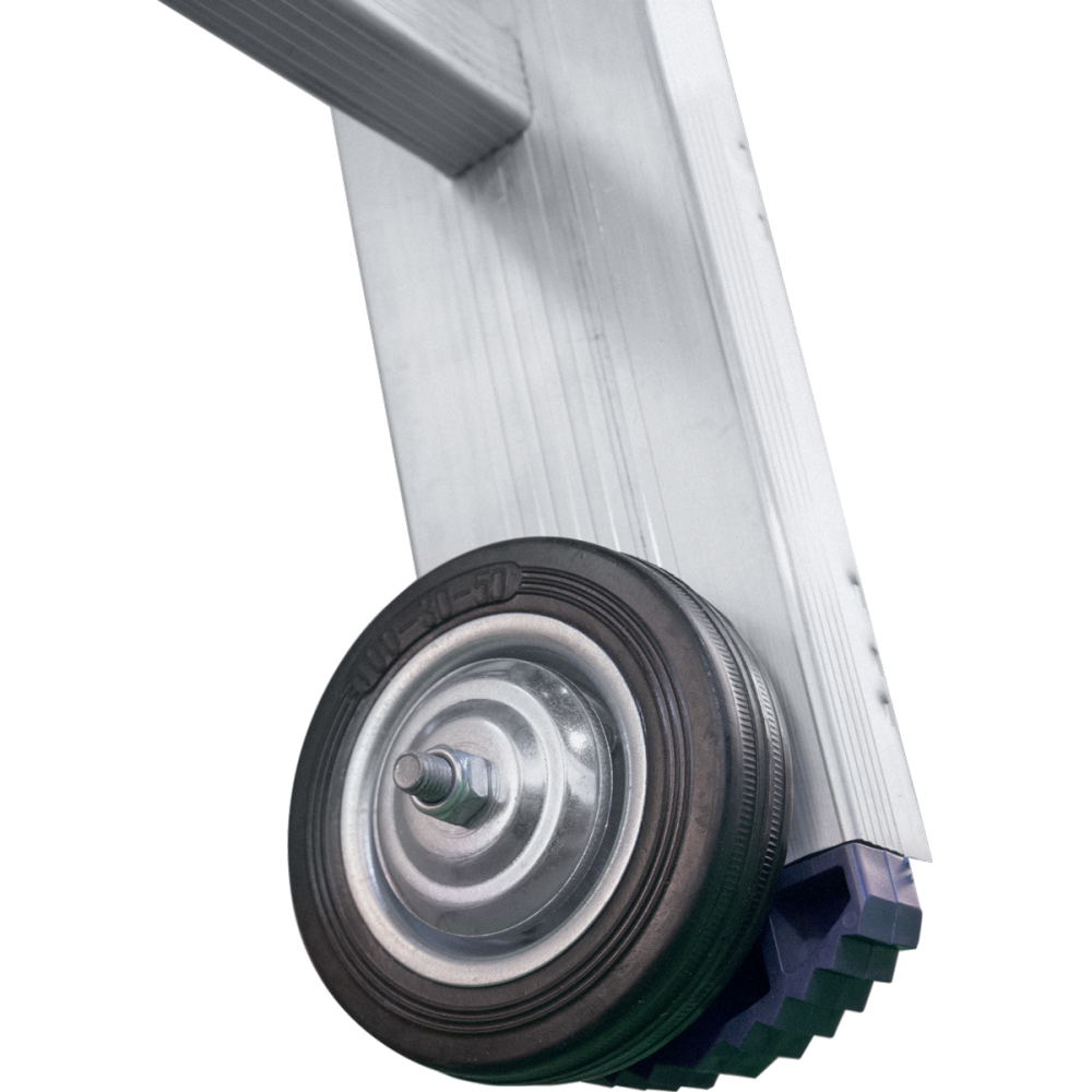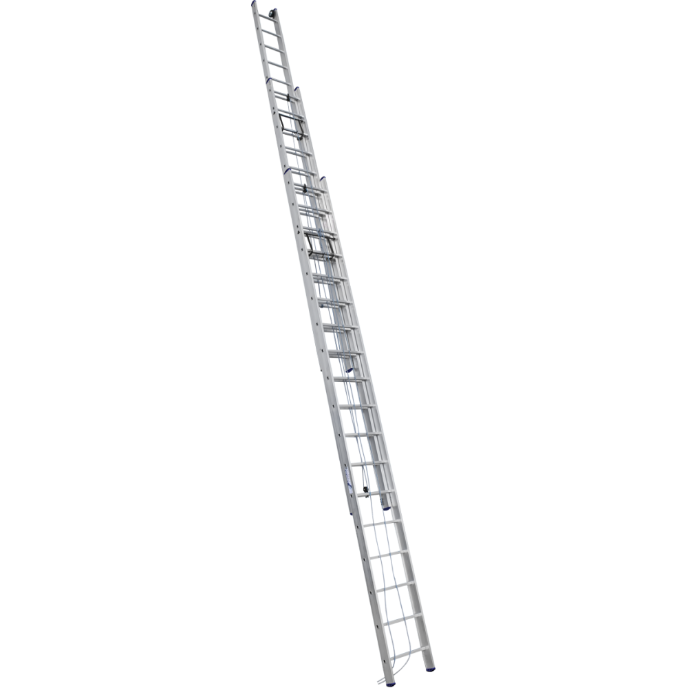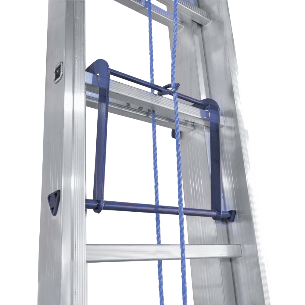Лестница в транспортном положении ставится к стене и последовательно с помощью двух канатов лестничных, полиспастов выдвигается и фиксируется на нужной высоте. Передвижение верхней секции по стене осуществляется с помощью колес.